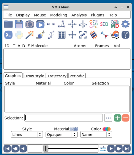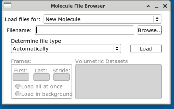 At this point you should see two VMD windows appear. VMD is menu-driven, so now you can use the VMD File menu to load a PDB or traajectory file.